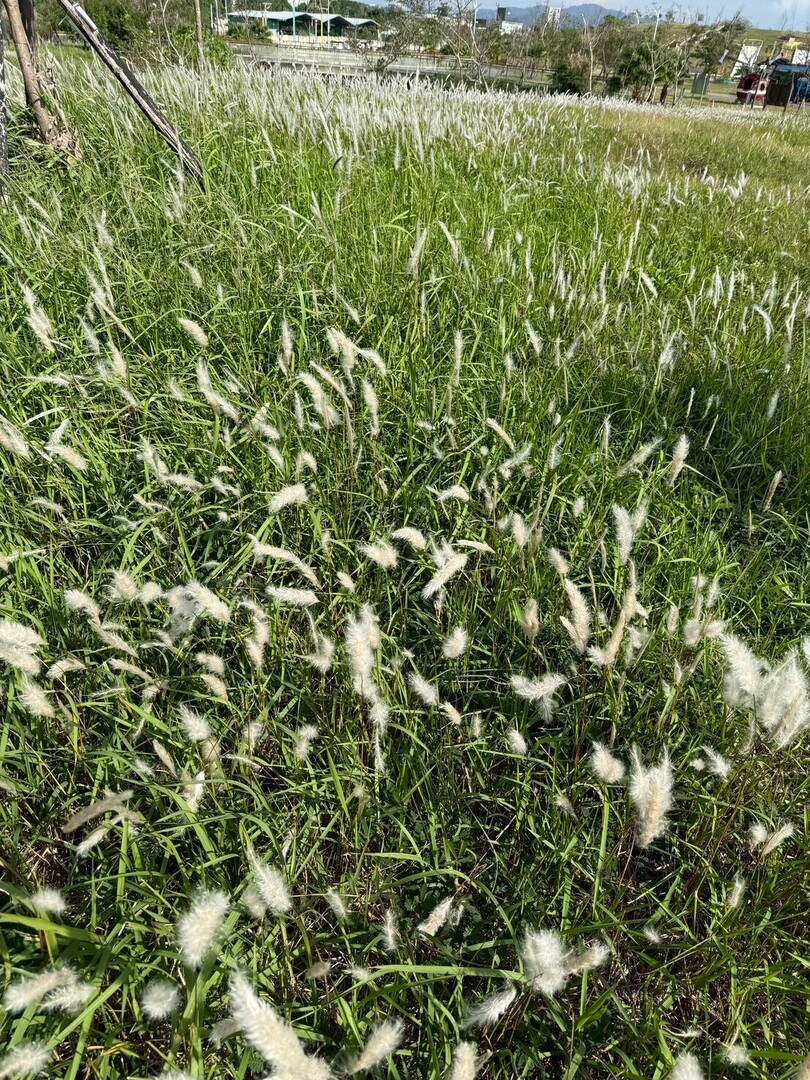 大嵙崁親水園區的河階地形與河道蜿蜒的自然樣貌,搭配冬季盛放的白芒,別有一番景緻。(圖片來源:陳子婷)