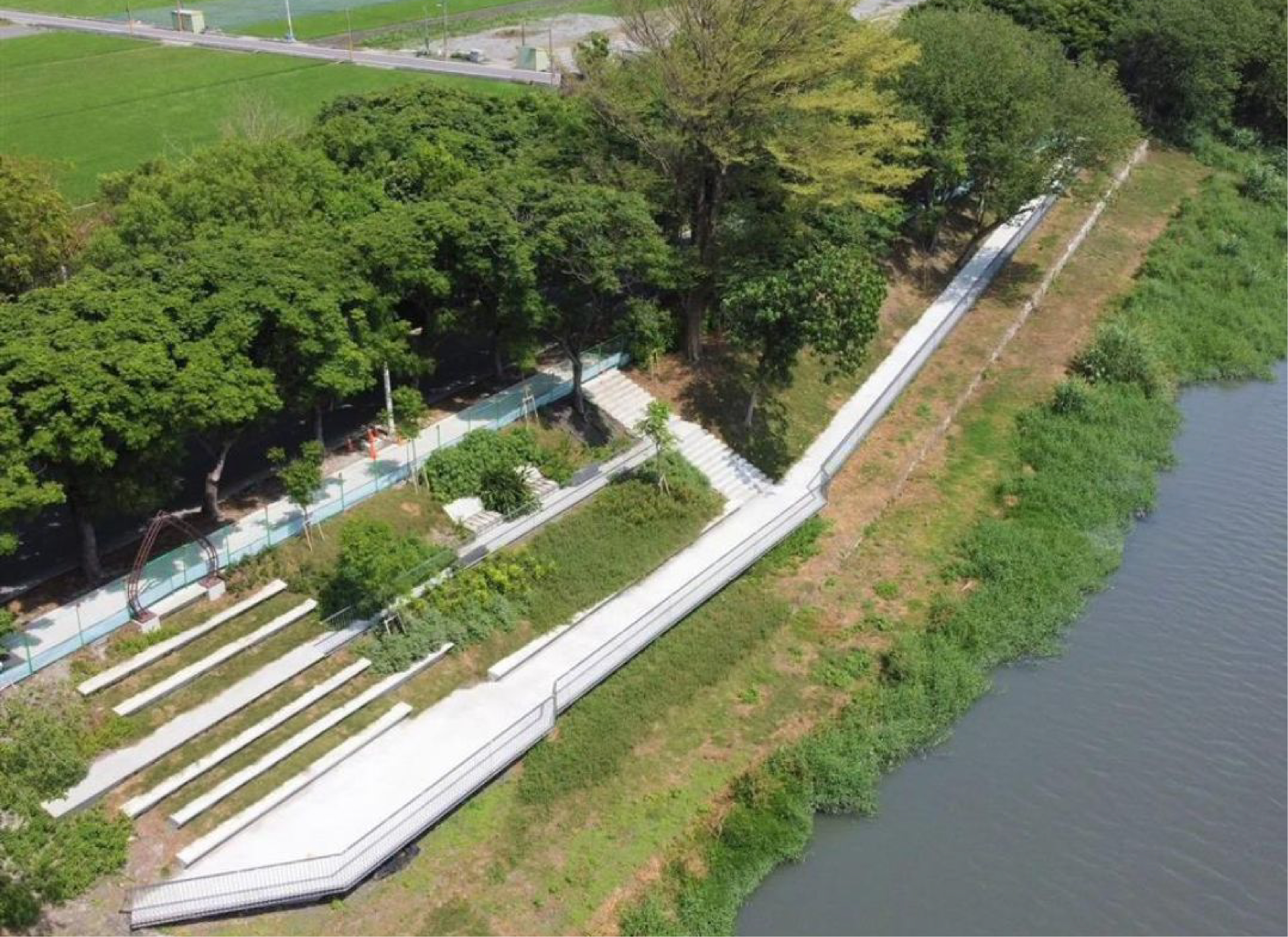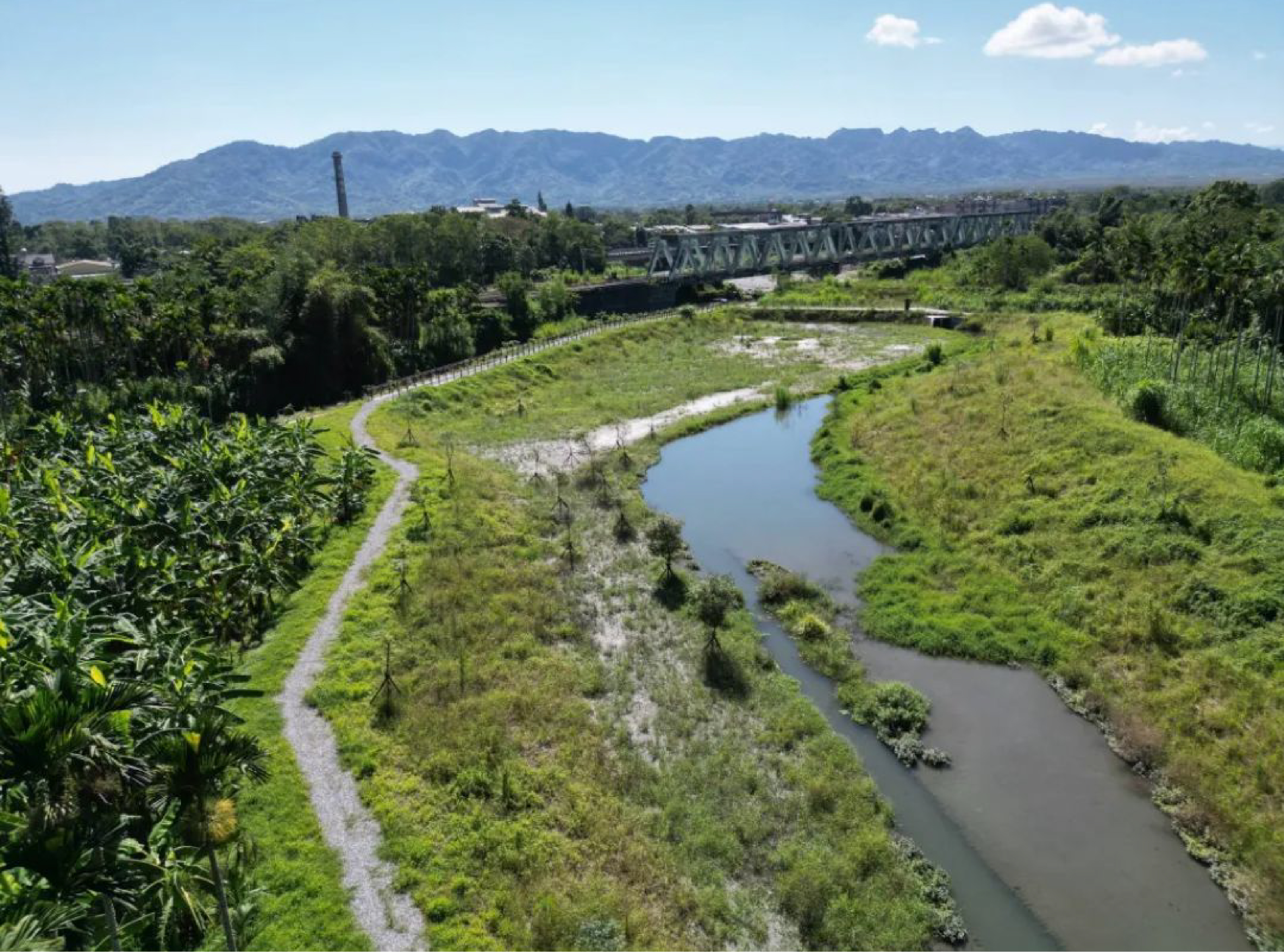 在生態環境復育與保護下,環境營造類重點在於同時創造人可親近之河岸空間。而彰化縣政府推動「東螺溪(石埤橋至舊鐵橋)水綠廊道工程」,大規模清理長期堆置於河岸林間的廢棄物,累計清除垃圾達3,073噸,成功移除多年累積於死角的污染源,顯著改善河岸環境品質。工程同時進行外來入侵種移除,並補植原生喬木與灌木,促使河岸林逐步朝向多層次林相發展。透過遮蔭及植物間的競爭機制,有效抑制外來種擴張,促進原生植群自然恢復,展現漸進式植生管理的成效,對於提升河岸棲地品質具有長期正面影響,也為民眾創造重新親近河川的空間與契機。