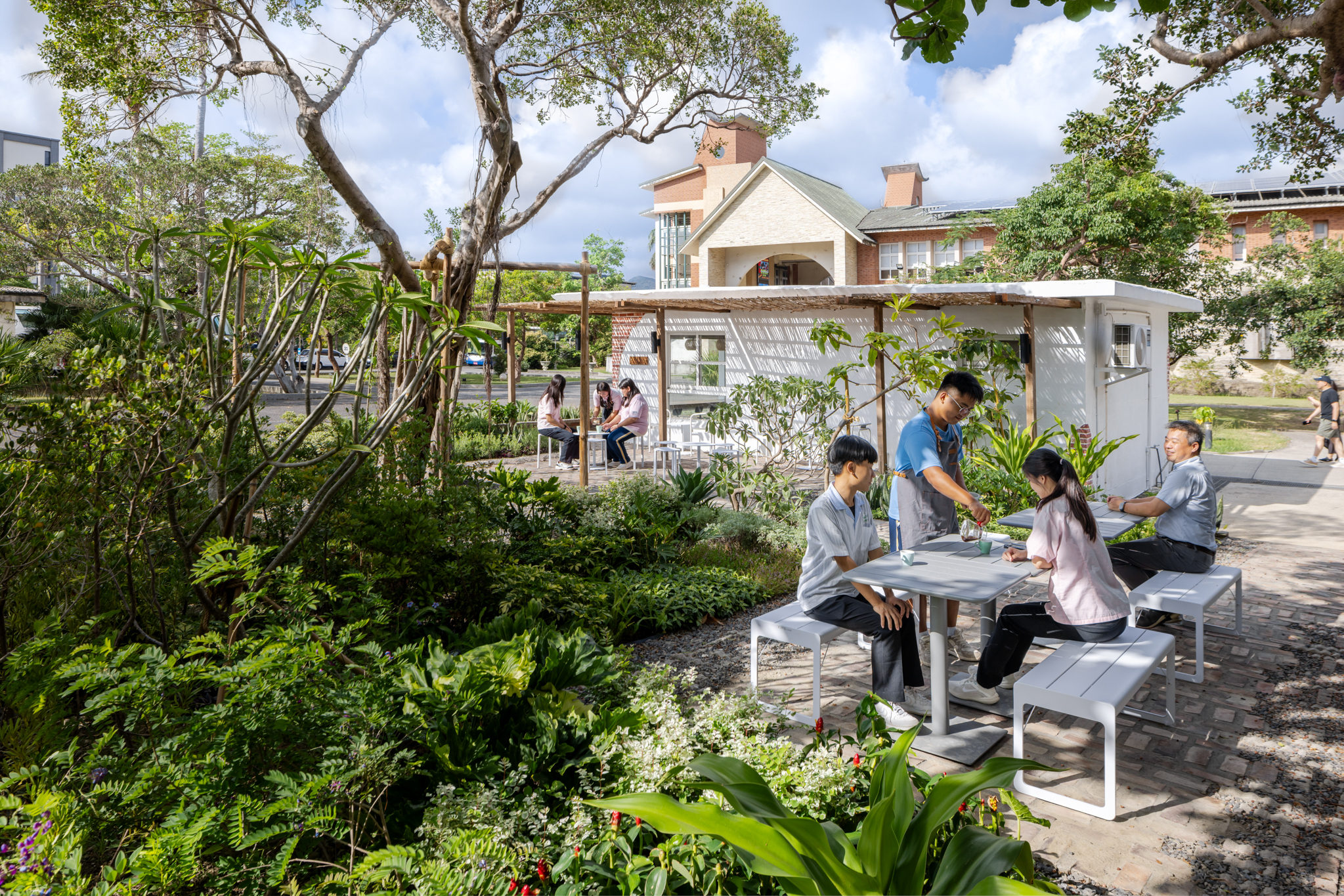 恆春商工一案雖然腹地不大,但在設計過程中卻進行了許多不同層面的嘗試。除了空間環境的改造,團隊也透過工作坊引導學生實際參與,讓大家從操作中認識植栽特性,並連結到地方的歷史記憶,讓設計更具教育意義。