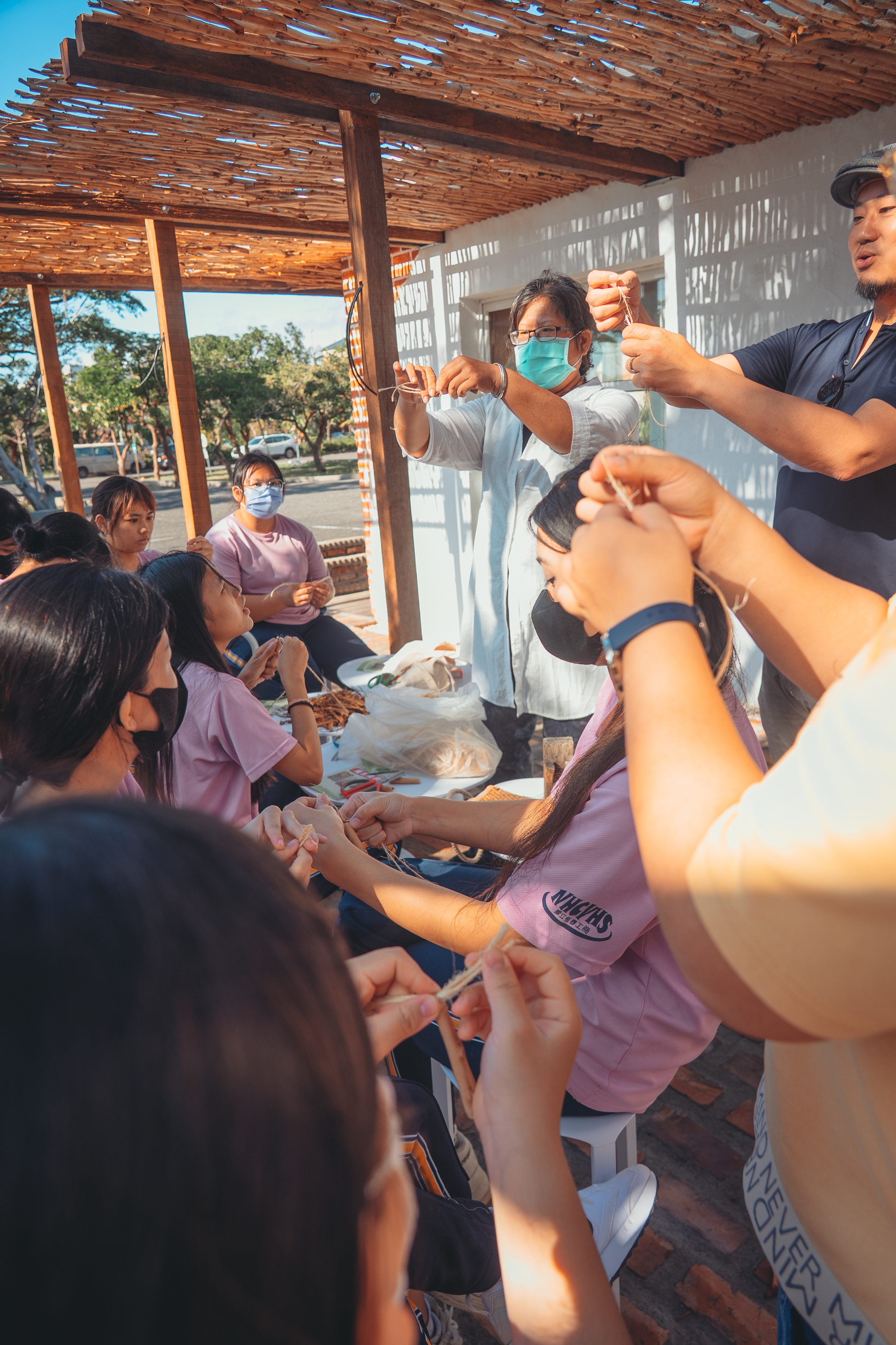 恆春三寶[2]中的瓊麻就是其中的代表。雖源自墨西哥,並非台灣原生,但其在當地經濟發展史中佔有重要地位。如今產業已沒落,僅存少數編織藝術家仍在使用麻繩創作,而瓊麻仍然在鄉間野地裏存在。鳴築景觀透過合作,將瓊麻重新帶回校園花園,讓學生實際觸摸、編織,重新認識這株植物的美感與歷史。這樣的設計,不僅讓植物成為景觀的一部分,更讓地方記憶在教育場域中延續。
