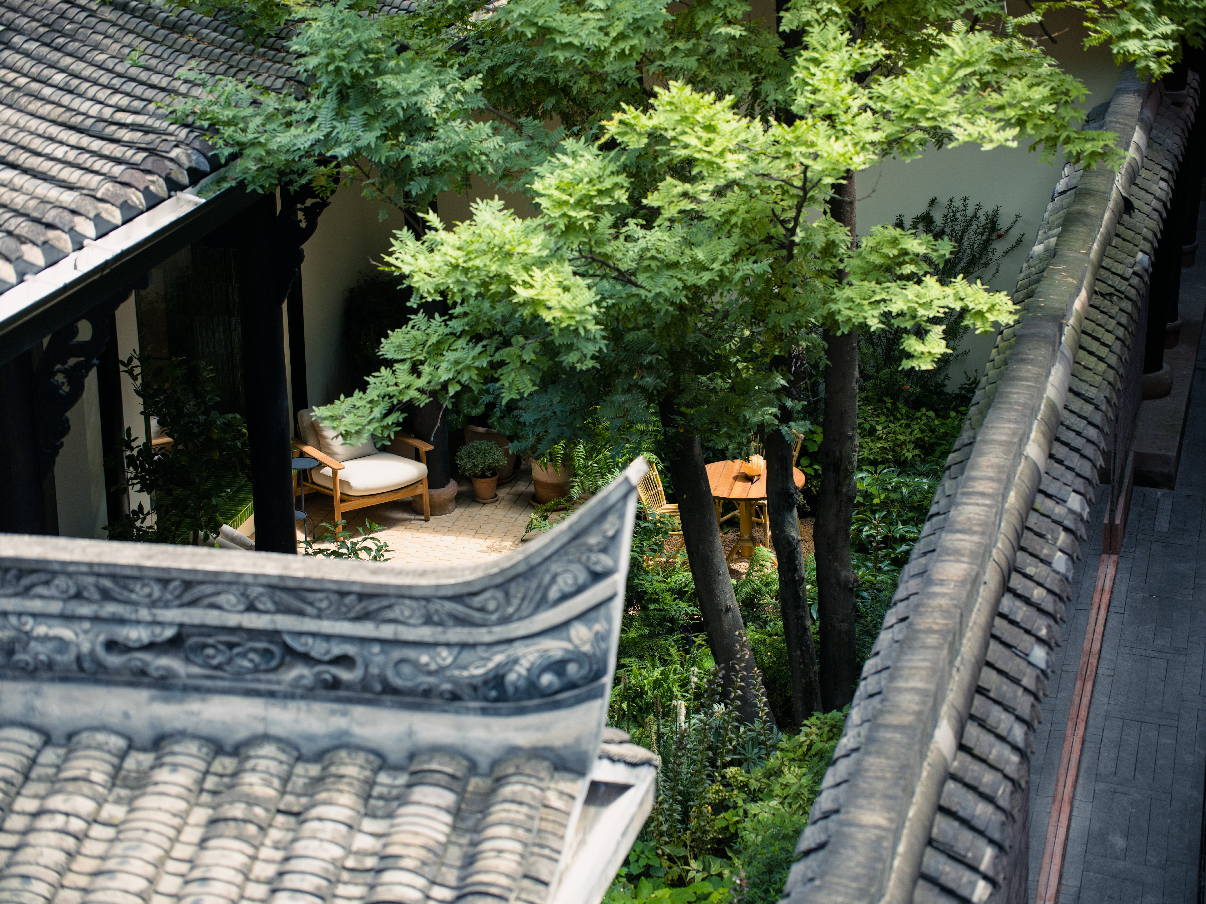 「設計與供應脫節」的困境,張志維分享鳴築景觀在國際案件中也曾遭遇相同挑戰,其中之一便是成都的 「LOEWE 歷史古宅花園修復」,必須展現植被樣貌,並回應 LOEWE 基金會作為西班牙精品品牌,對「工藝、修復與文化真實性」的期待,因此「如何在成都的深宅大院中,展現中國西南的特殊植被」,成為了這個案子的關鍵。