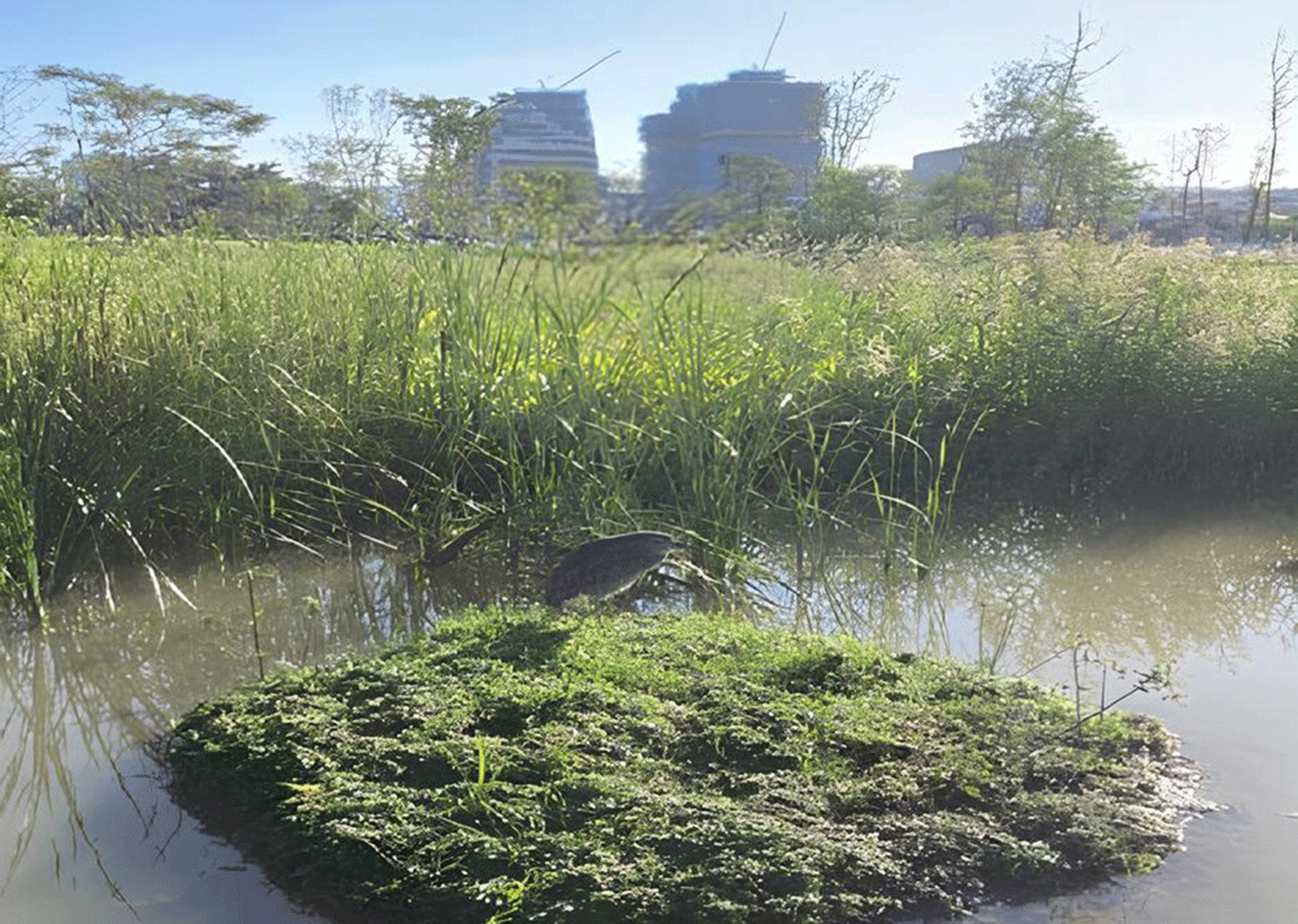 8.根據羽林生態股份有限公司 (Feathered Forest Ecological Work Co. Ltd.) 於 2020 年 7 月至 2021 年 6 月間針對包含新新公園等六處濕地執行調查的生態報告,新新公園的水質符合國際級濕地標準。在物種復育方面,新新公園雖為道路、聚落、建物包夾,與鄰近自然環境有一定的距離,但根據調查,已成功吸引到遷移能力較具優越性的物種進駐。如該調查裡觀察到的紅冠水雞已繁殖出第二窩子代,此外也紀錄到較為罕見的留鳥 - 棕背伯勞,發育階段的新新公園植群較為稀疏開闊,正好是棕背伯勞偏好的環境型態。物種豐富度及數量皆隨時間呈增長趨勢,且已有多類物種成功繁殖、建立族群。
