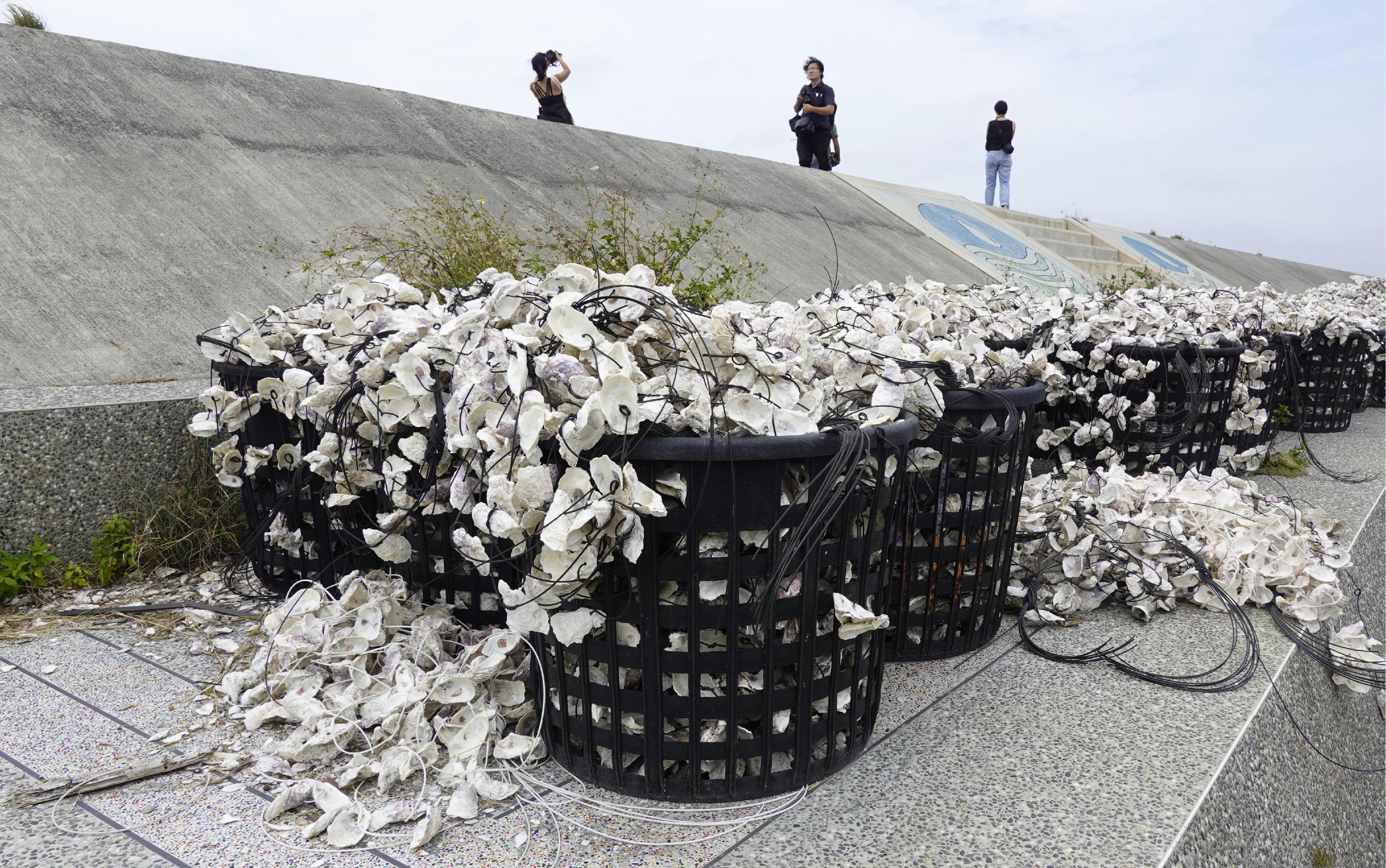 岸邊密佈的蚵棚與隨處可見的蚵殼堆,成為最在地的風景。蚵殼,除了是在地養蚵工具,更作為飼料、綠建材、土壤改良劑等可循環資源,使環保與永續理念融入日常生活中,展現了海口居民與環境共生的韌性。