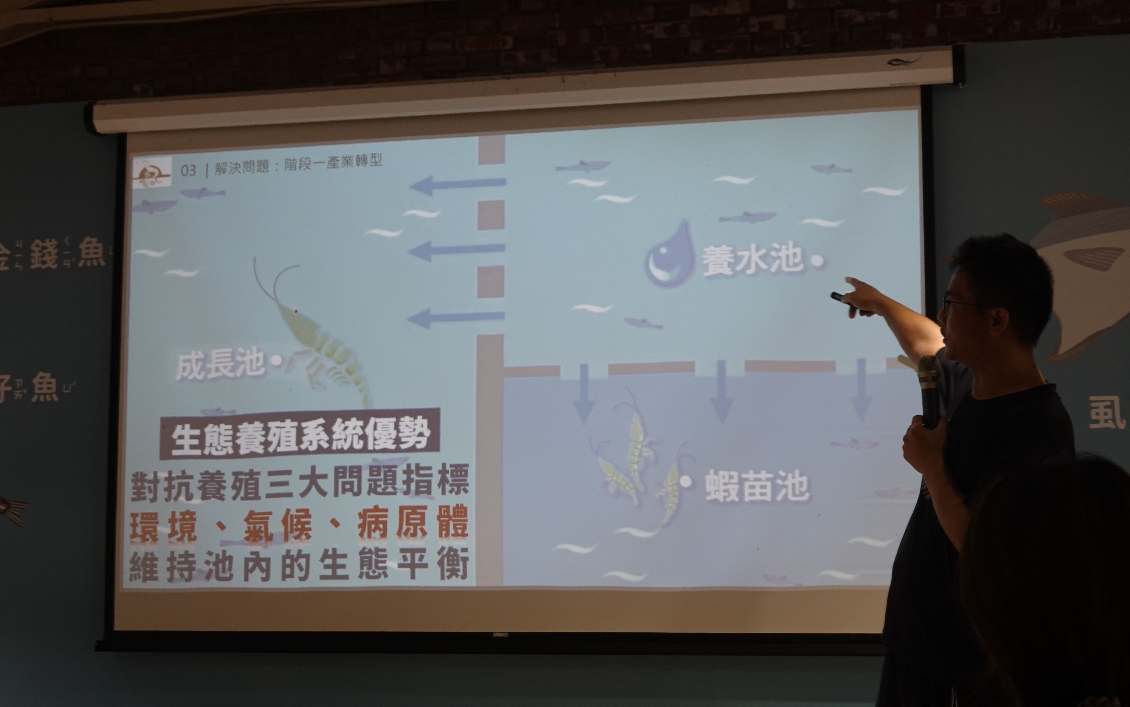 養殖魚塭景觀在雲林縣口湖鄉隨處可見。其中,返鄉青年林富正創立「好蝦冏男社」,以生態養殖系統結合智慧管理,實踐「魚、蝦與文蛤混養」的循環理念。他強調:「在養殖池中,白蝦為了逃避被其他魚類捕食而拼命游泳和活動,這就是生態系。」,因此這裡出產的靈活白蝦肥美鮮甜,各大餐廳甚至海外爭相訂購。此外,林富正打造遊客能親身「聽蝦、玩蝦、吃蝦」的一日養殖體驗圈,每年吸引眾多遊客,成為地方創生的成功典範之一。