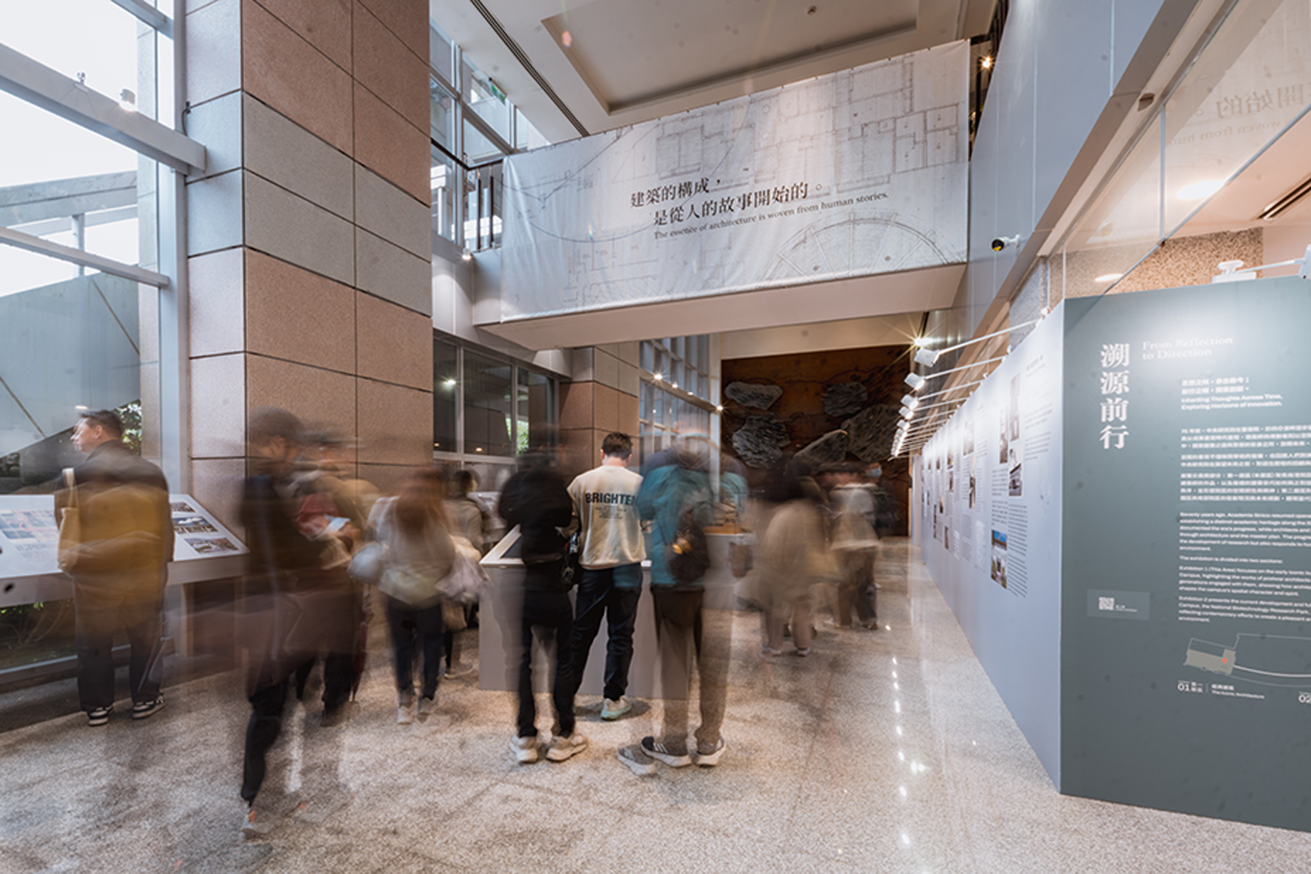 「思想之所,承古啟今;前行之眼,探索創新。」《溯源前行—中央研究院建築與環境空間展》,以中央研究院自1954年在臺復院、於四分溪畔逐步發展的院區歷程為背景,回望學術、建築與環境如何在時間中交織。如同研究員以研究成果書寫時代進程,建築師與規劃者則以空間留下印記,在中西文化交會之中探索建築思想的安身之所。展覽分為兩個展區:第一展區聚焦南港院區的經典建築,呈現戰後建築師如何形塑院區空間精神;第二展區則關注南港院區、國家生技研究園區、南部院區之發展現況與未來規劃想像,表述今日中央研究院對於宜人、友善環境的追求。