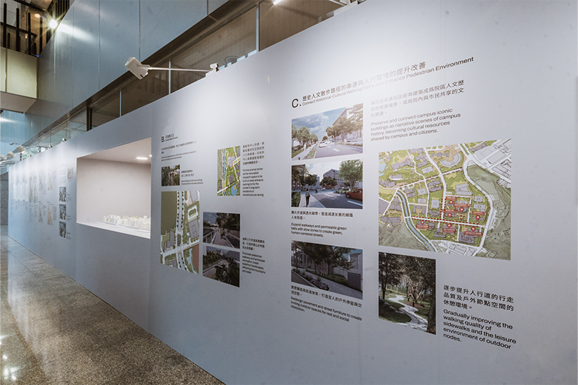 這次的展覽,作為中央研究院意圖與大眾分享院內建築與空間環境及溝通的媒介,龔紋莎建議:在院區中其實有條隱然成形的建築導覽路徑,可以從戰後一路走到九〇年代,透過行走於其中,便能閱覽完成一段高度濃縮的建築與空間閱讀,而這個動線上的建築這次在展場及展覽的摺頁上都能看見。她特別歡迎展覽期間,大家可以先到展場,將展覽視為一個索引,觀展後可以拿著摺頁從圖上走進真實的場域。展覽結束後,民眾依然可以再帶著摺頁回到院區,進行更多的探索。