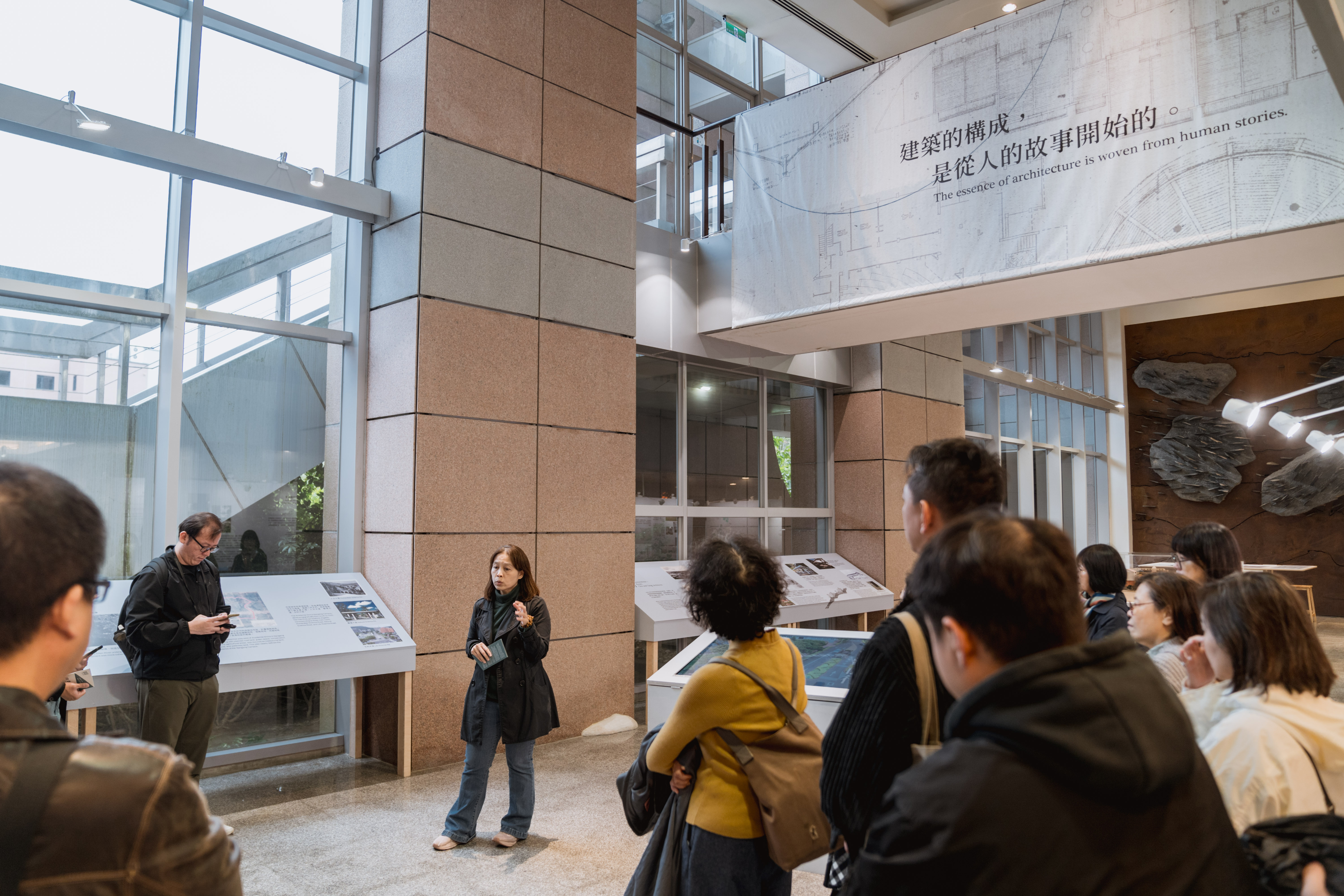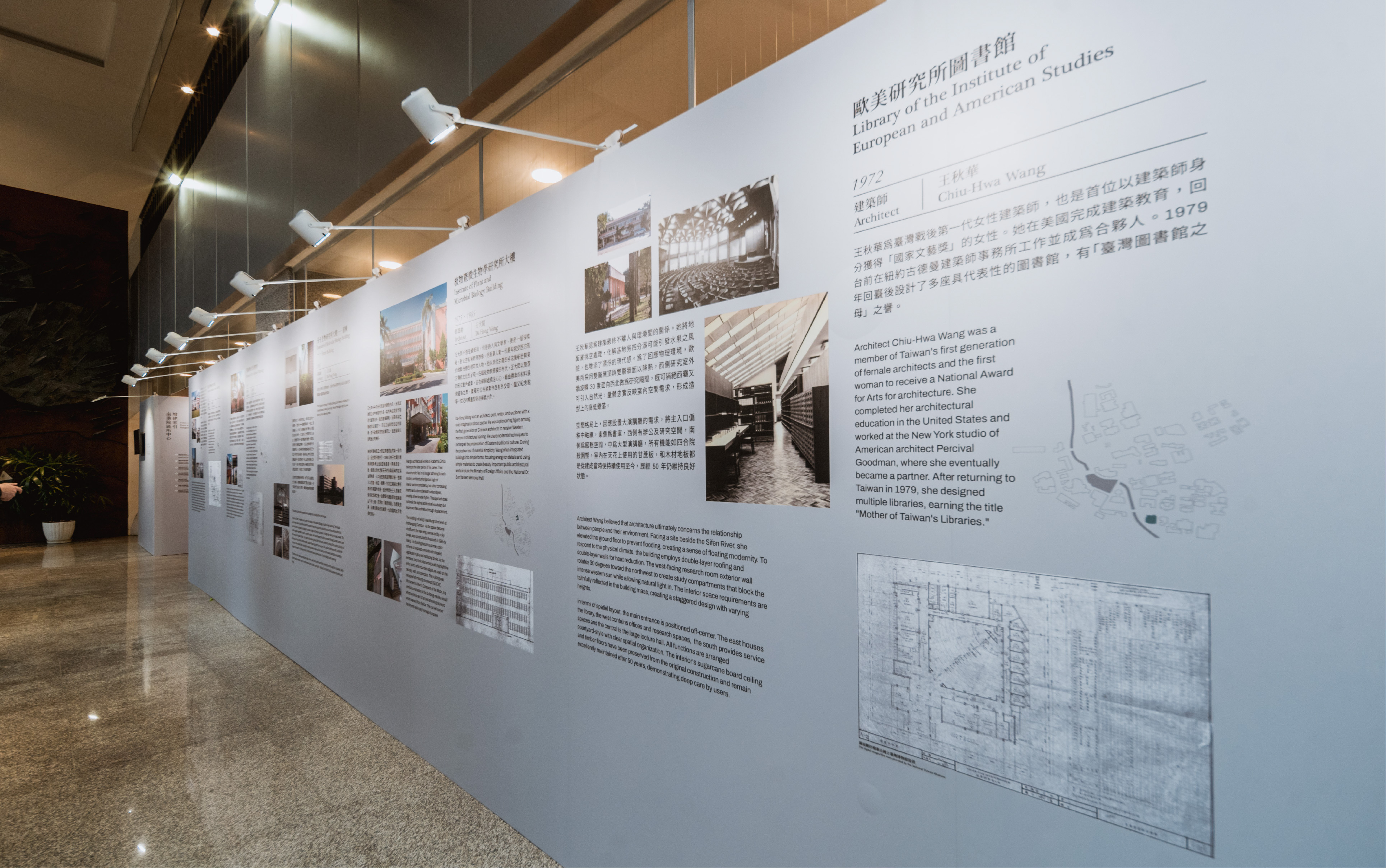 談及如何用一句話形容這個展覽,龔紋莎給出的答案是:「溯源前行。」第一展區以「經典建築」為主題,從建築「空間書寫」切入,視其為建築師在土地上的落款,比擬研究員以研究留下成果,建築師則透過建築在四分溪邊留下簽名。從王大閎清楚可辨的建築語彙,到王秋華對環境與光線關係的處理,皆表現建築師在特定時代與環境中,對自身位置的回應,龔書章老師在某一次的討論中提到,這些建築作品,都是建築師的「思想之所」,龔紋莎認為這是一個很有詩意同時又很扣合主題的形容。龔紋莎也提到,中央研究院的建築更與台灣整體發展緊密扣合。例如七〇年代因應國際局勢變動,台灣準備退出聯合國的時代背景之下,因此研究國際強權─美國的需求提升,因此中研院有了「美國研究中心」的設置。從中強調建築在此不只是空間容器,而是呈現當下時代狀態的具體證據。她認為,所謂歷史現場的價值,不在於凍結,而是保存整體狀態與多樣性,讓人理解自己「所在之處」,以及未來可能前行的方向。