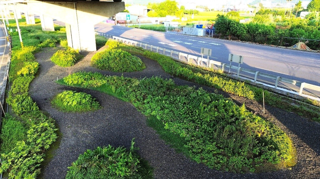 公路兩旁為聚落、農耕地及溪流環境,王伸永觀察:「當群落長得夠密時,外來雜草反而進不來。」更驚喜的是,生態效益很快顯現:蜜蜂、蝴蝶開始進駐,甚至在季度鳥類調查時,紀錄到三級保育類紅尾伯勞與應予保育野生動物黑頭文鳥。這片原本荒蕪的橋下,如今已成為一個小型生態系。