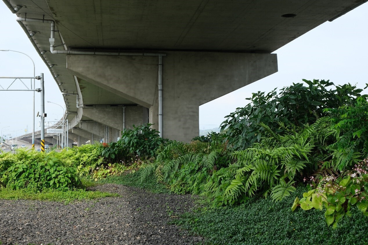 這次的實驗,其實並不是團隊主動挑選的基地,而是公路局指定的一段橋下空間。這類場域普遍存在於都市裡:陰暗、環境不佳、不適合種樹。過去,它們多半被鋪上混凝土,或草草以草皮、灌木帶過。