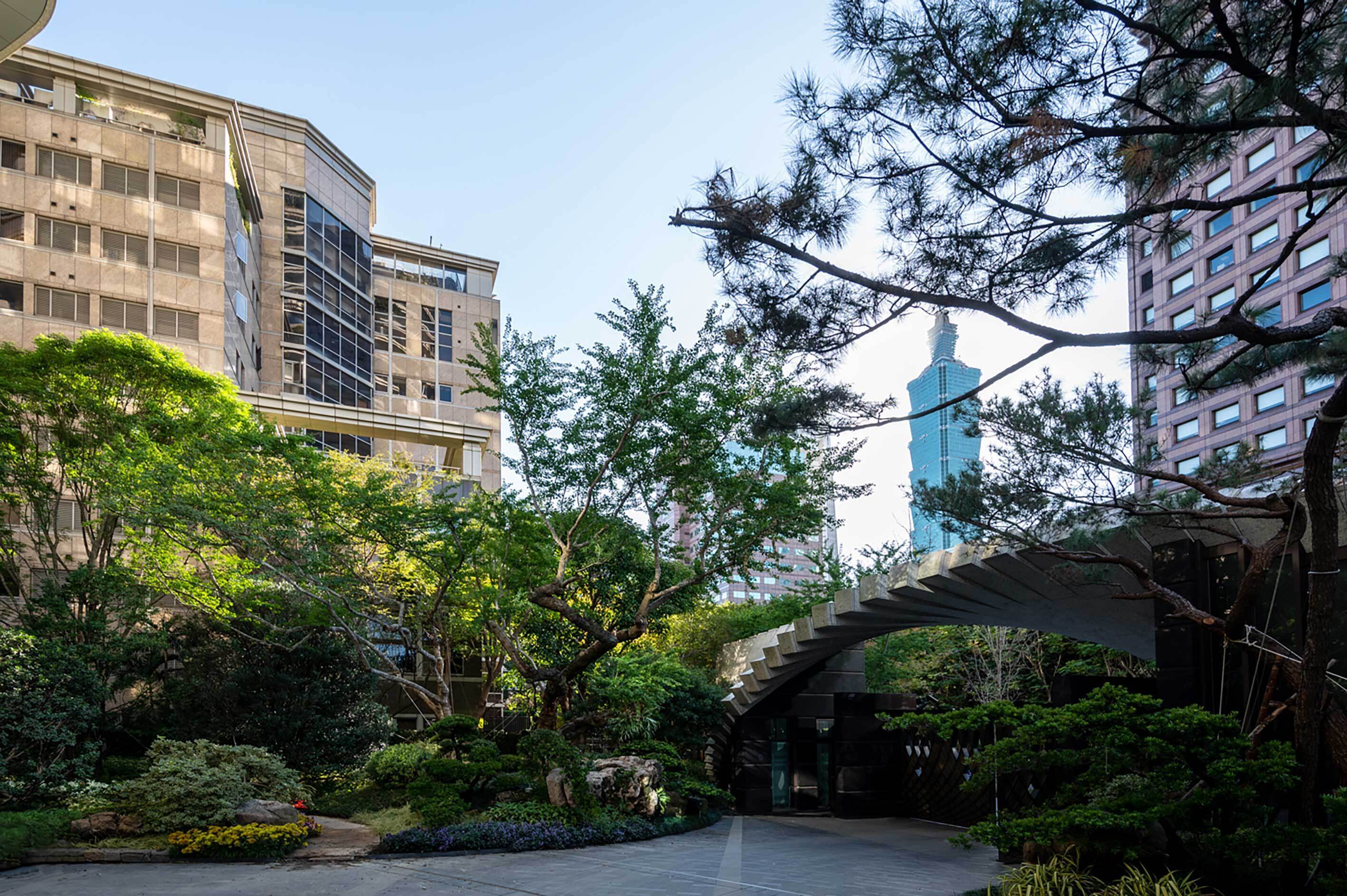 瀑布石牆間大量留設綠帶,以石牆為背景,如插花一般,種植松、柏、蕨…等,一草一木形塑出心中的山水景觀。利用原本建築隔震帶結構設計成木棧道,讓住戶可更直接欣賞瀑布壯麗之美。悠遊散步其中,看山、聽水,忘記都市的喧囂,讓身心靈找到一處休憩之所。