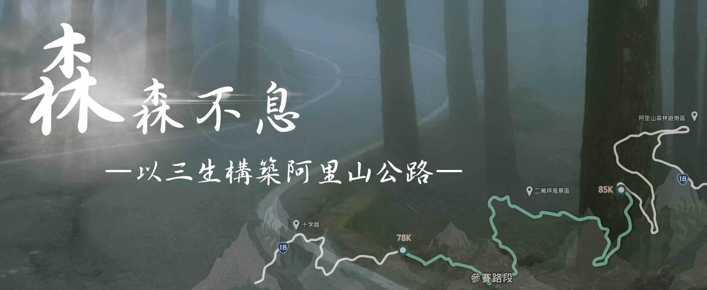 富有闊葉林、霧林帶優美的林相,更有幾世代守候這塊土地的原住民「鄒族」,生態、景觀、人文,豐富阿里山公路的景觀。阿里山公路於1982年開通,颱風豪雨造成坍方落石,2009年莫拉克颱風更是路毀橋斷、柔腸寸斷,颱風豪雨造成坍方落石,影響交通更不在話下,邊坡失去地被地保護落石不斷,促使我們在公路復健的過程更加省思大自然與環境,邁向生態共融、無痕景觀、無痕山林的理念。