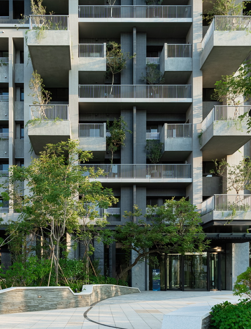 評審評語:本案刻意降低建蔽率、保留大面積開放空間綠地,同時導入垂直綠化,從水平與垂直面向將住戶的生活空間推向戶外。透過室內外空間安排與視線引導,形塑成為一個被大自然包圍,充滿水與綠的公共生活區域,成效令人激賞。